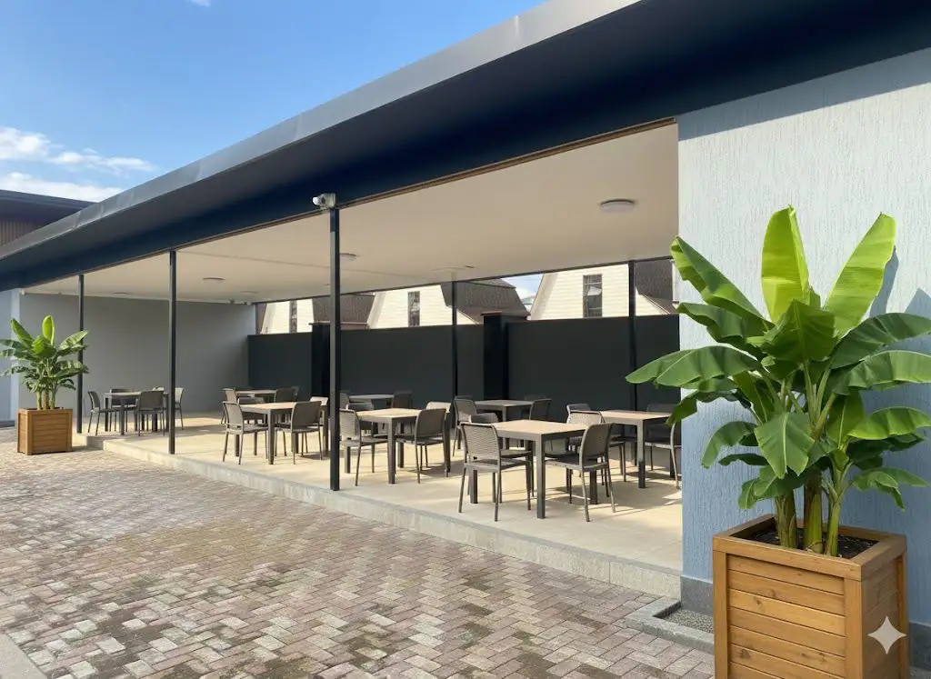В отеле работает ресторан локальной кухни: завтраки, обеды и ужины с акцентом на гриль и свежие фермерские продукты (абхазия с питанием). Доступен платный room service — любимые блюда и напитки можно заказать прямо в номер.