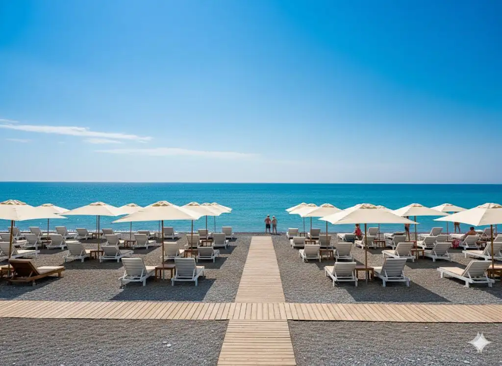 SEA HOUSE ECO FAMILY HOTEL 4* расположен в курортном поселке Алахадзы, известном своими широкими песчано-галечными пляжами и спокойной атмосферой, идеально подходящей для семейного отдыха. Поселок находится между Гагрой и Пицундой, что обеспечивает удобный доступ к основным достопримечательностям региона. В непосредственной близости от отеля — чистые пляжи Черного моря. Удобное расположение позволяет легко добраться до Гагры (около 10-15 минут на авто) с ее аквапарком, ресторанами и развлечениями, а также до Пицунды (около 15-20 минут на авто) с ее знаменитым сосновым бором и историческими памятниками. Отель предлагает организацию трансферов от аэропорта Адлера и экскурсий по самым живописным местам Абхазии, включая озеро Рица, Новоафонский монастырь и Сухум.