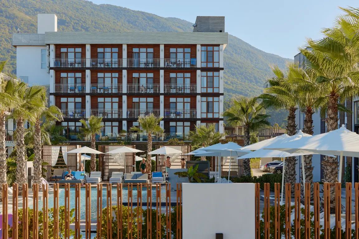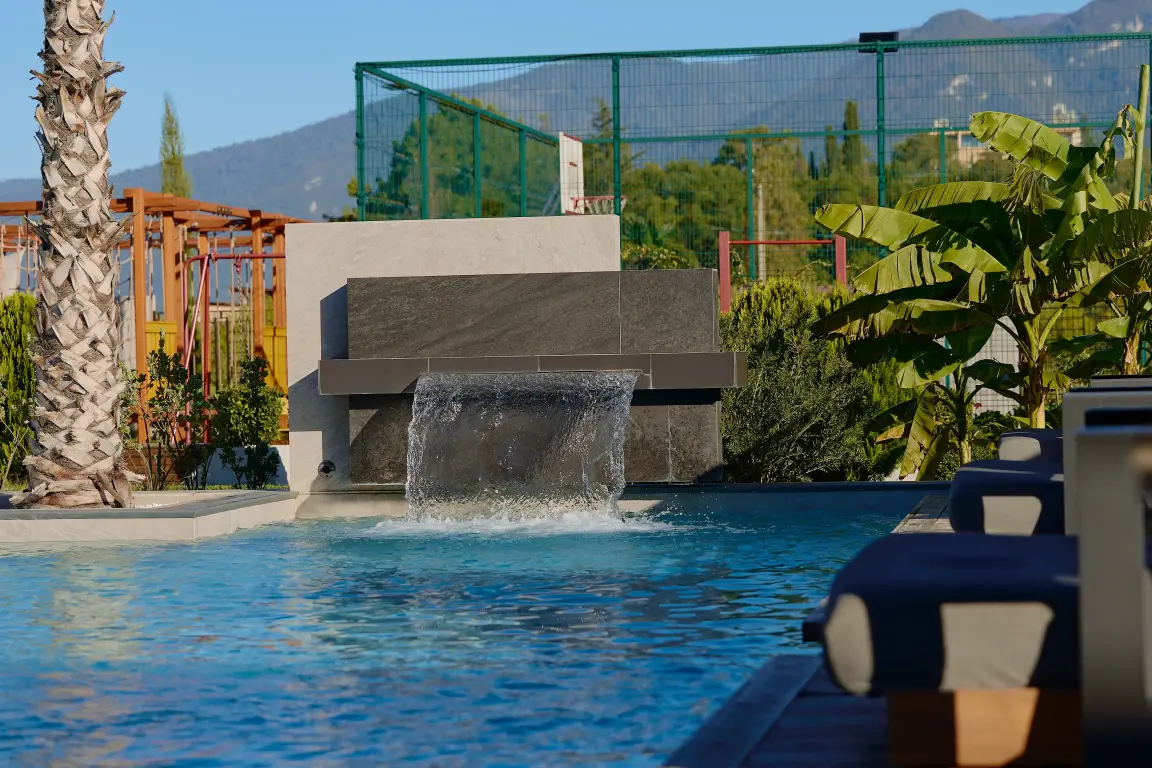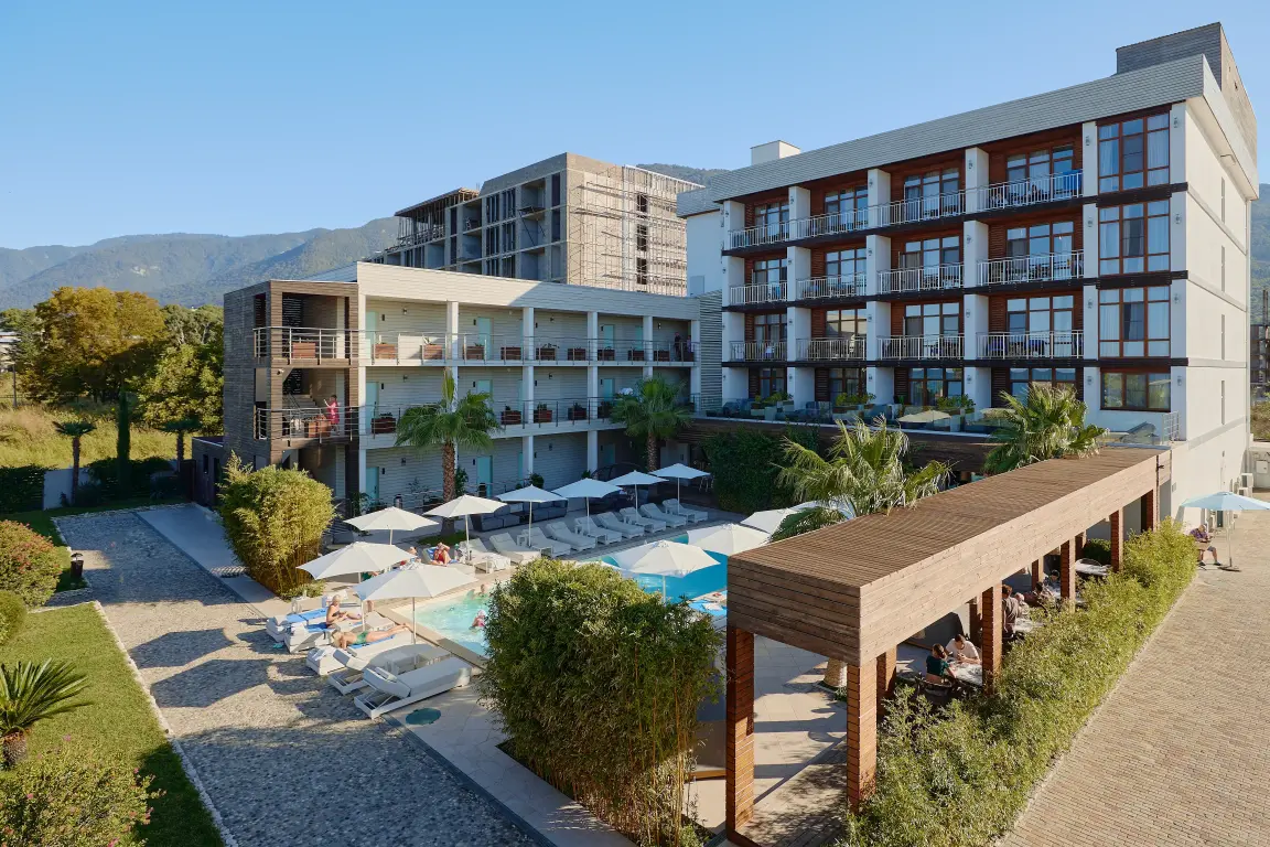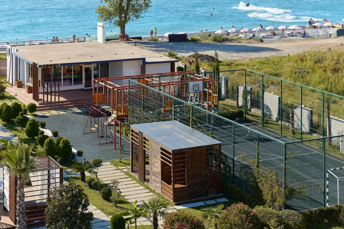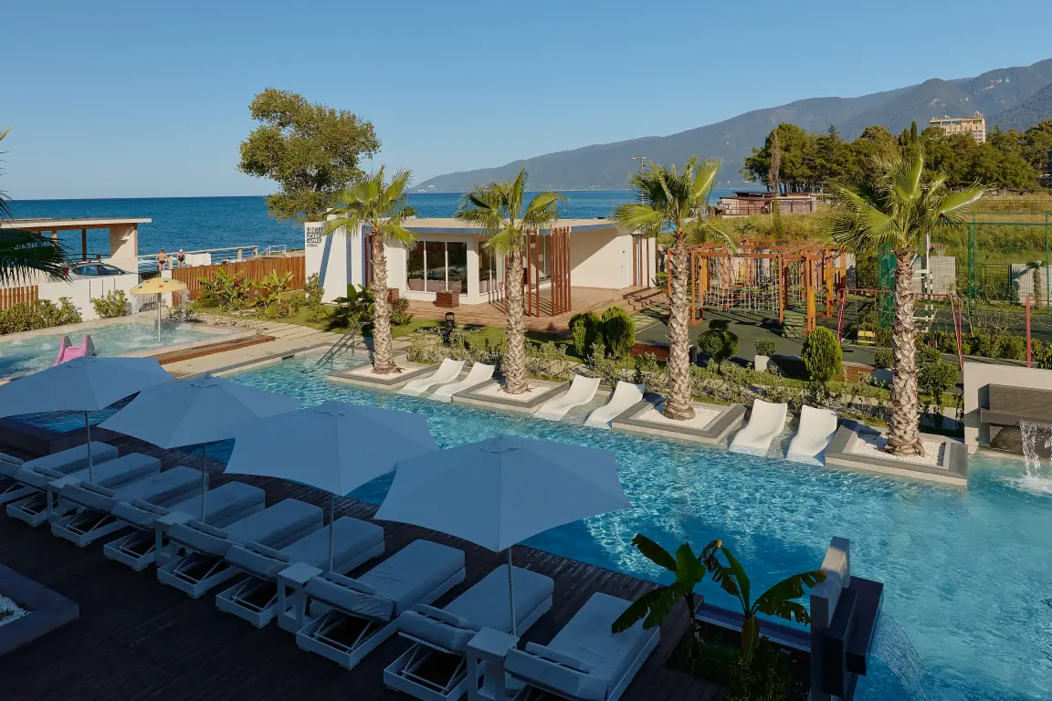 Aquamarine Family Club Hotel — это уникальный семейный отель в Гагре, расположенный на первой береговой линии по адресу улица Абазгаа, 58. Всего в 30 метрах от чистого галечного пляжа Черного моря, наш отель специально создан для комфортного отдыха с детьми. Современная инфраструктура, включающая круглогодичный бассейн с подогревом, детский клуб с ежедневной анимацией и ресторан со шведским столом, делает Aquamarine идеальным выбором для семейного отпуска в любое время года.