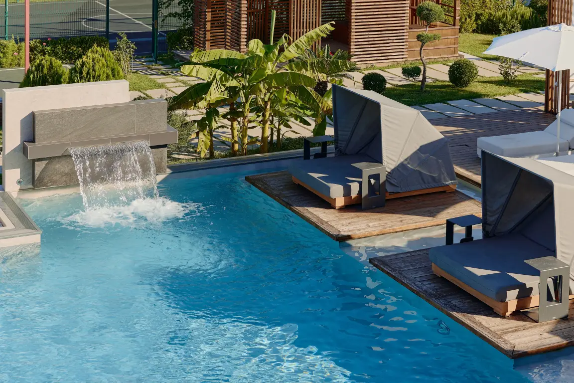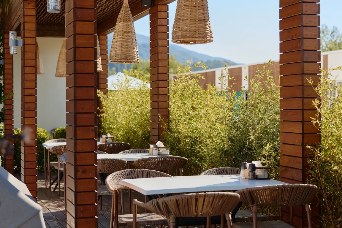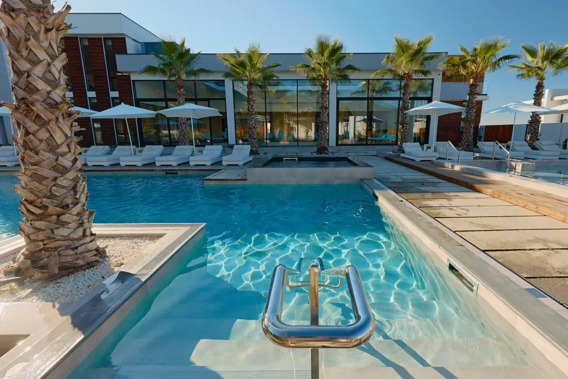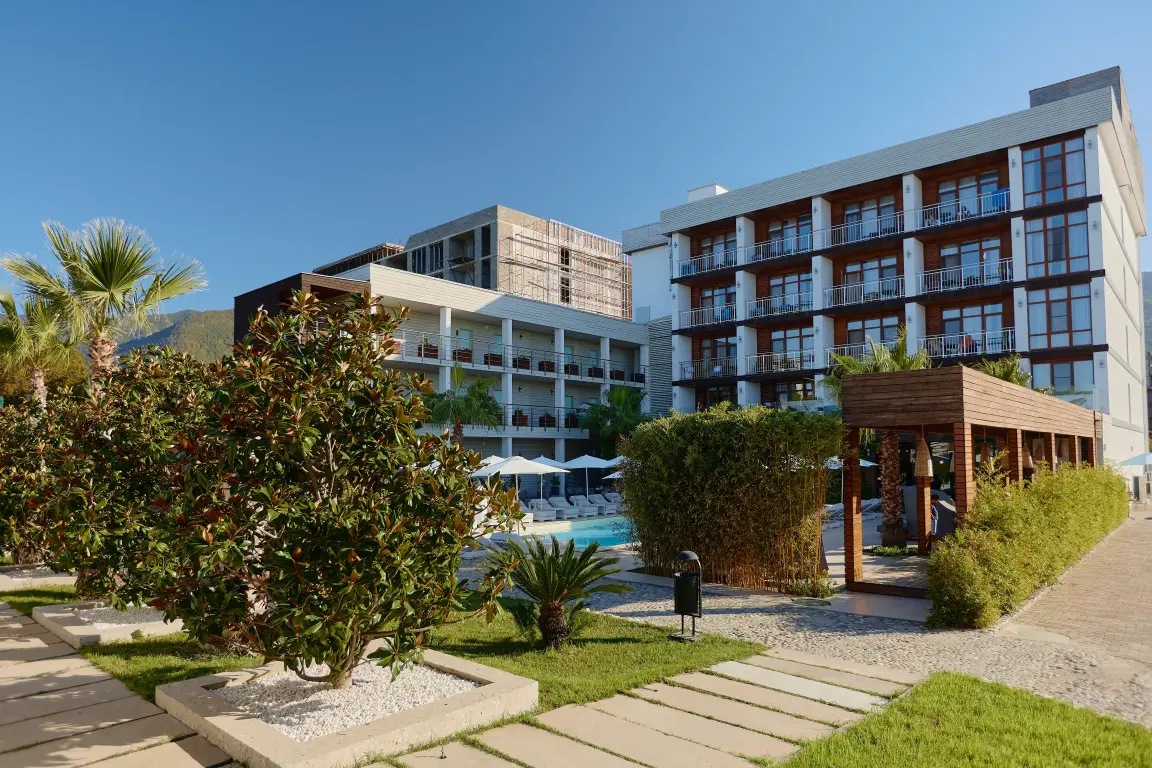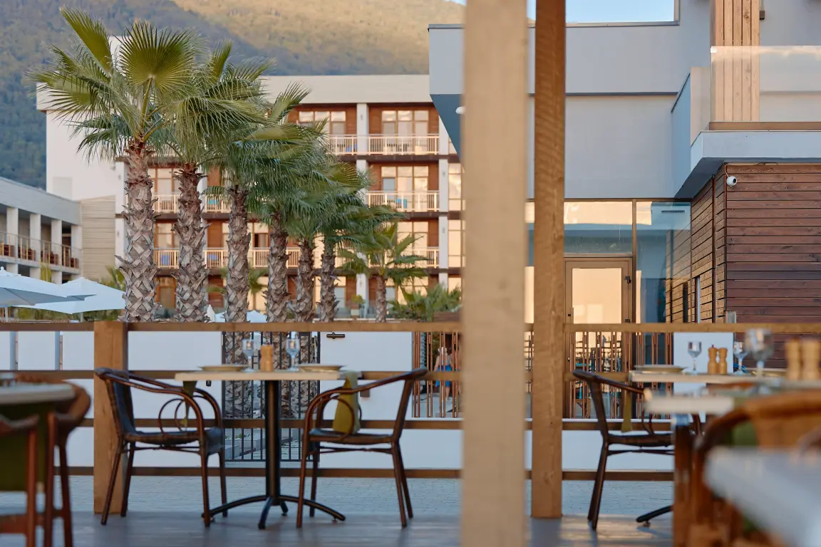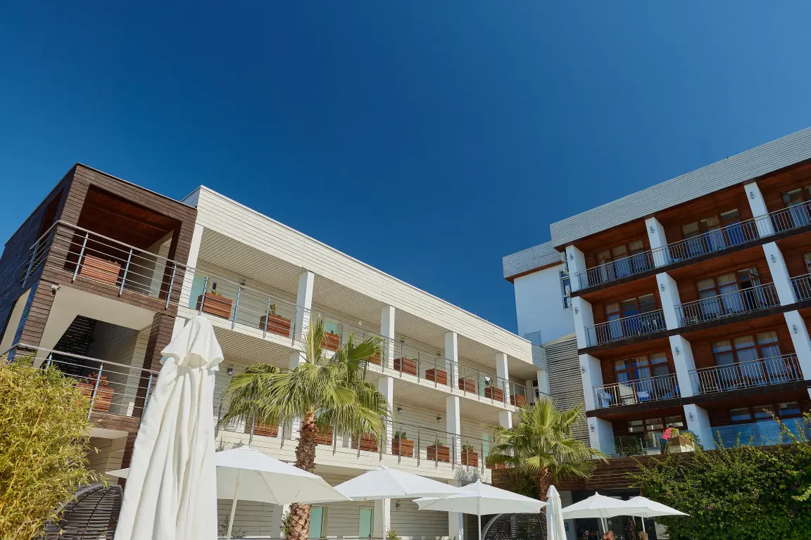 Aquamarine Family Club Hotel — это уникальный семейный отель в Гагре, расположенный на первой береговой линии по адресу улица Абазгаа, 58. Всего в 30 метрах от чистого галечного пляжа Черного моря, наш отель специально создан для комфортного отдыха с детьми. Современная инфраструктура, включающая круглогодичный бассейн с подогревом, детский клуб с ежедневной анимацией и ресторан со шведским столом, делает Aquamarine идеальным выбором для семейного отпуска в любое время года.
