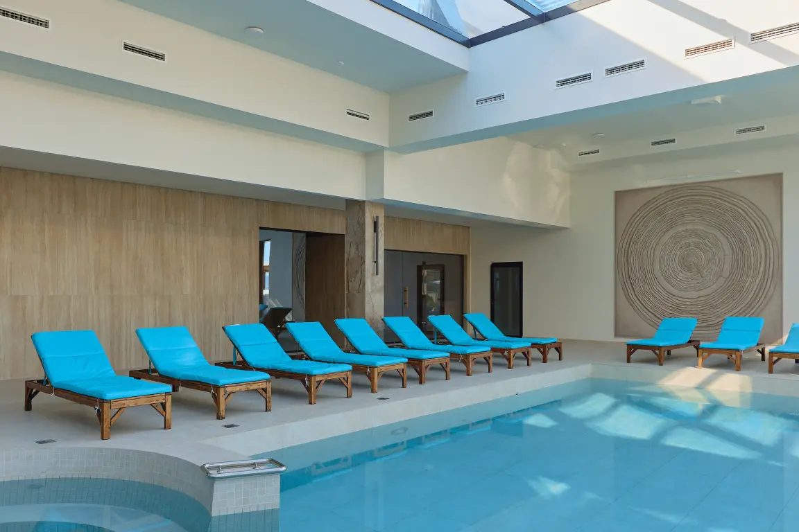 Гордость нашего отеля — современный аквакомплекс, работающий круглый год:
