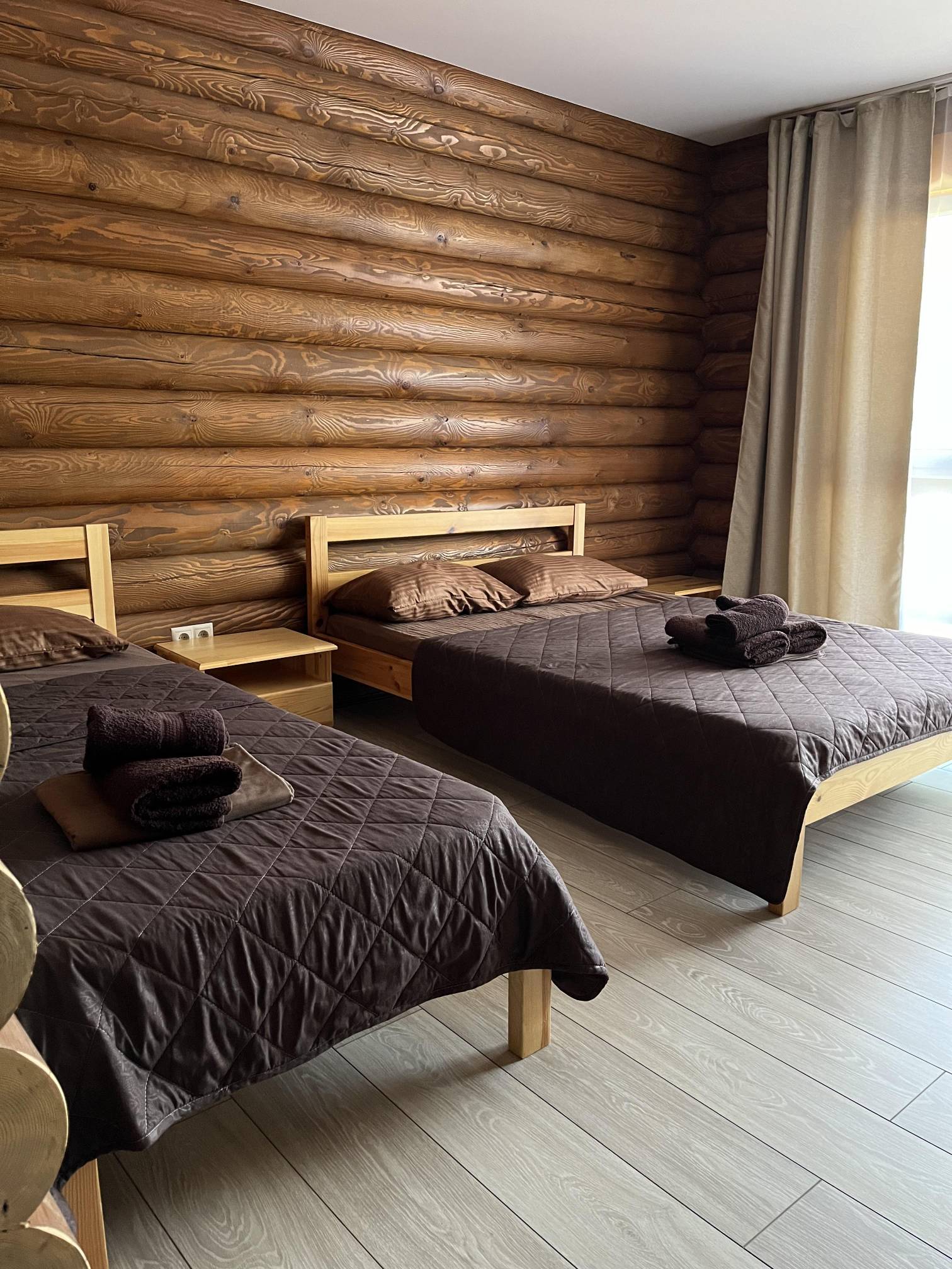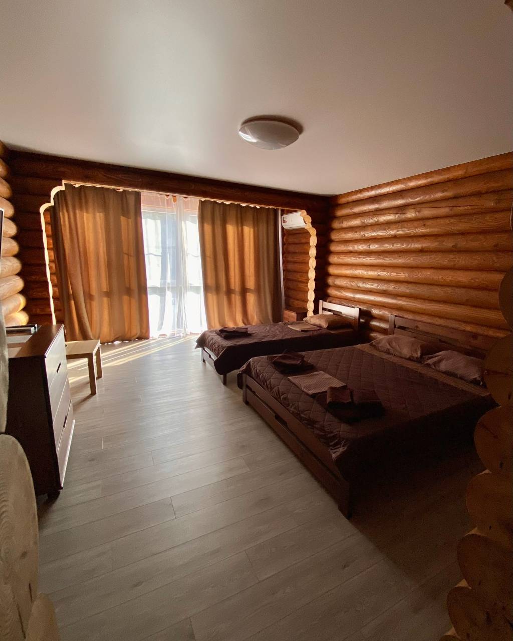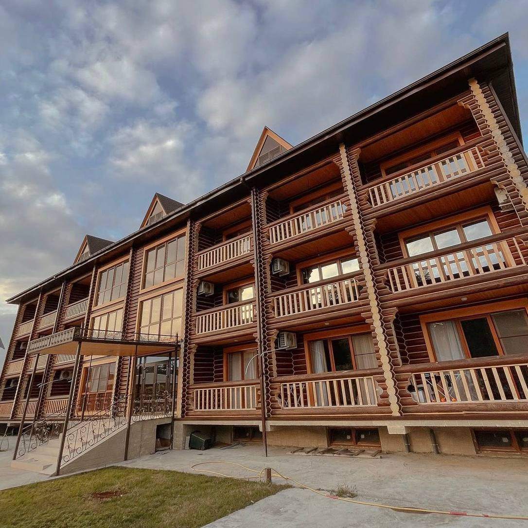 Эко-дом из бревна строится из натуральных материалов — цельных бревен, которые сохраняют природную структуру дерева. Такие стены обладают отличной тепло- и звукоизоляцией, создают уникальный микроклимат, поддерживают оптимальную влажность и наполняют воздух приятным древесным ароматом. Проживание в бревенчатом доме дарит ощущение уюта, единения с природой и способствует полноценному отдыху, в отличие от стандартных отелей из искусственных материалов.