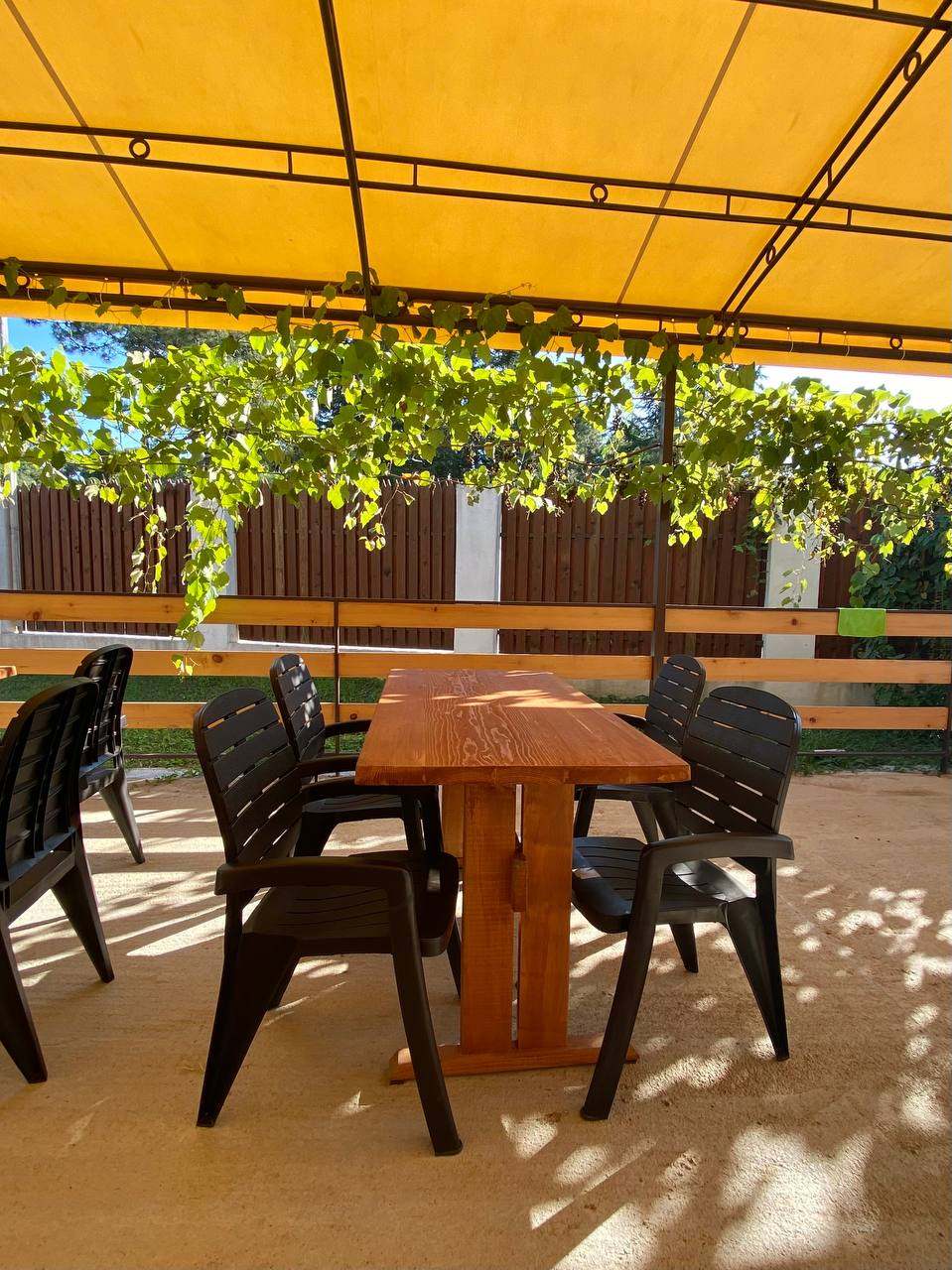 На территории работает летнее кафе, где можно заказать блюда и напитки. Это удобно для гостей, предпочитающих отдыхать без забот о питании.