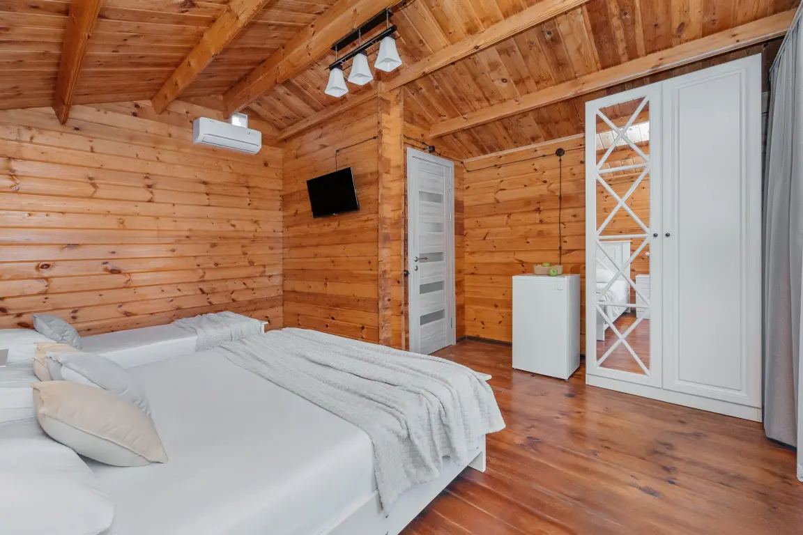 Все домики оснащены всем необходимым для комфортного проживания, включая удобные кровати, современную мебель и уютную обстановку.