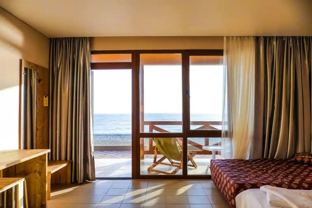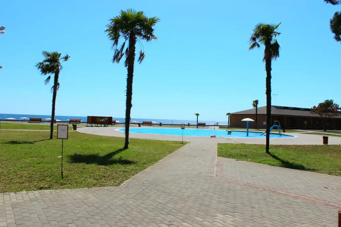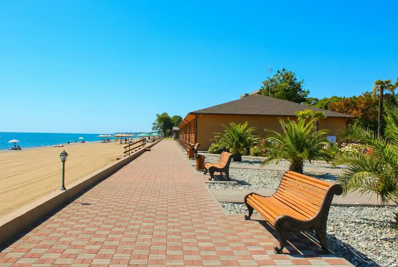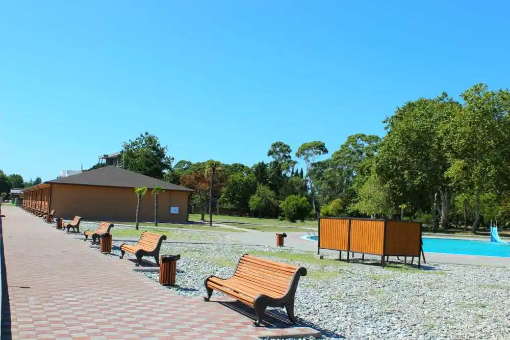 SPA HOTEL NAPRA расположен на первой береговой линии, что обеспечивает прямой доступ к собственному пляжу и морю. Территория отеля утопает в зелени эвкалиптового сада и сосновой рощи, создавая уникальный микроклимат и атмосферу уединения. До границы с Россией — всего 3 км, а до центра Гагры — несколько минут на автомобиле. Такое расположение идеально подходит для семей с детьми, любителей природы и всех, кто ценит комфортный отдых у моря.