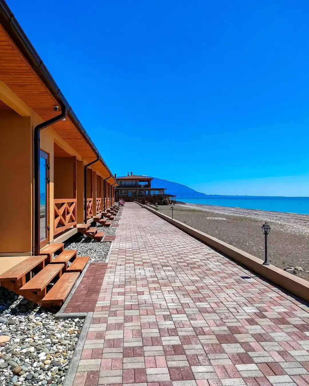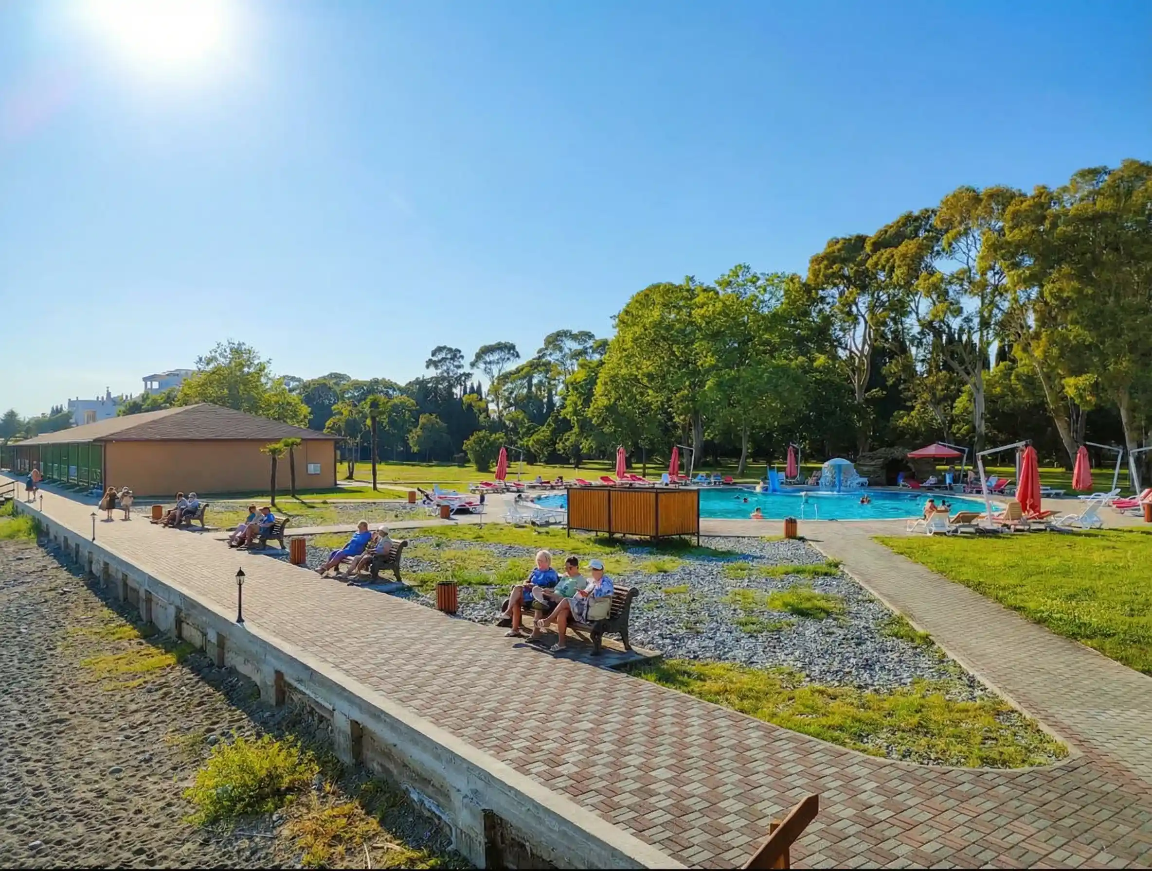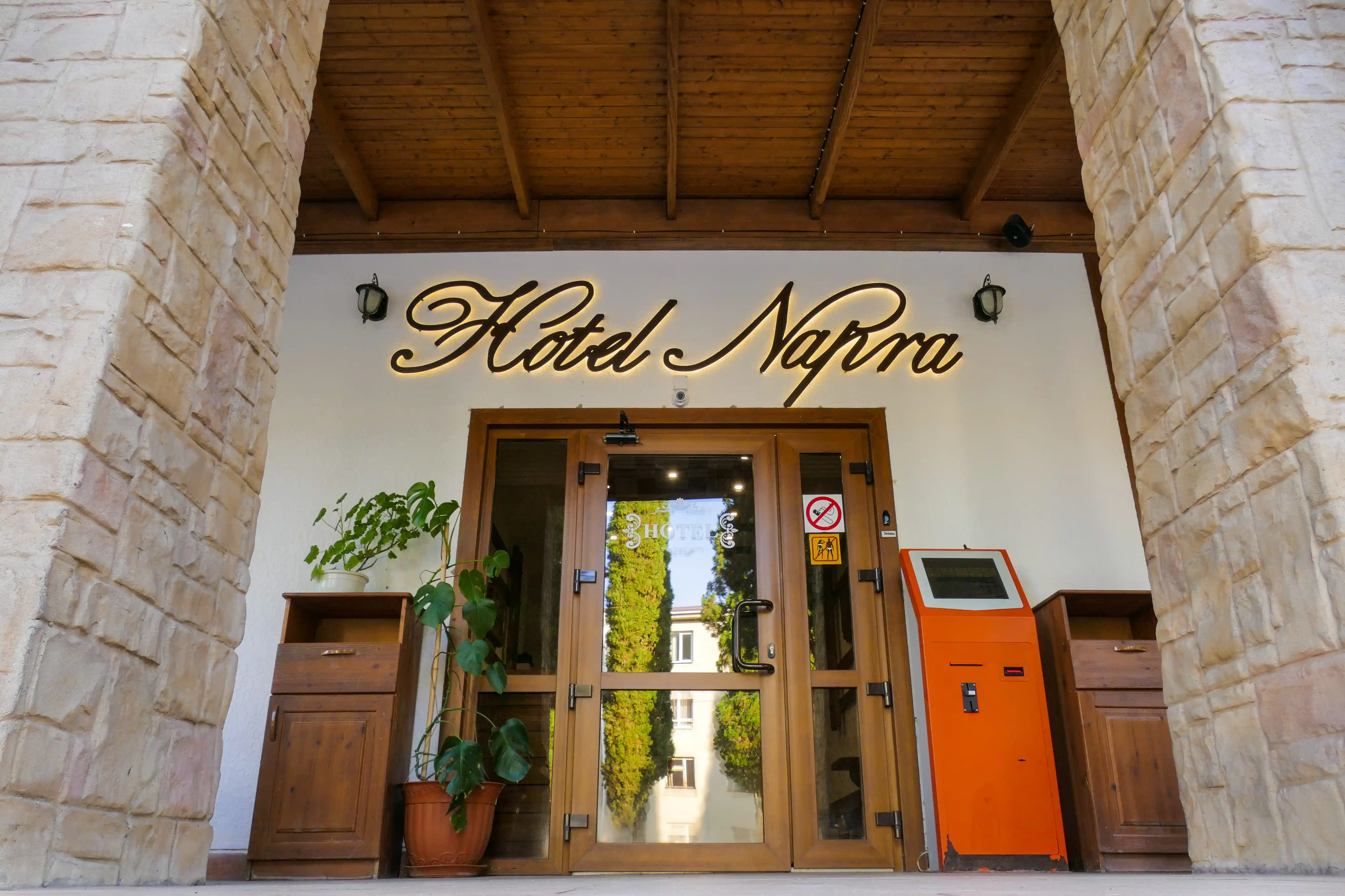 SPA HOTEL NAPRA расположен на первой береговой линии, что обеспечивает прямой доступ к собственному пляжу и морю. Территория отеля утопает в зелени эвкалиптового сада и сосновой рощи, создавая уникальный микроклимат и атмосферу уединения. До границы с Россией — всего 3 км, а до центра Гагры — несколько минут на автомобиле. Такое расположение идеально подходит для семей с детьми, любителей природы и всех, кто ценит комфортный отдых у моря.