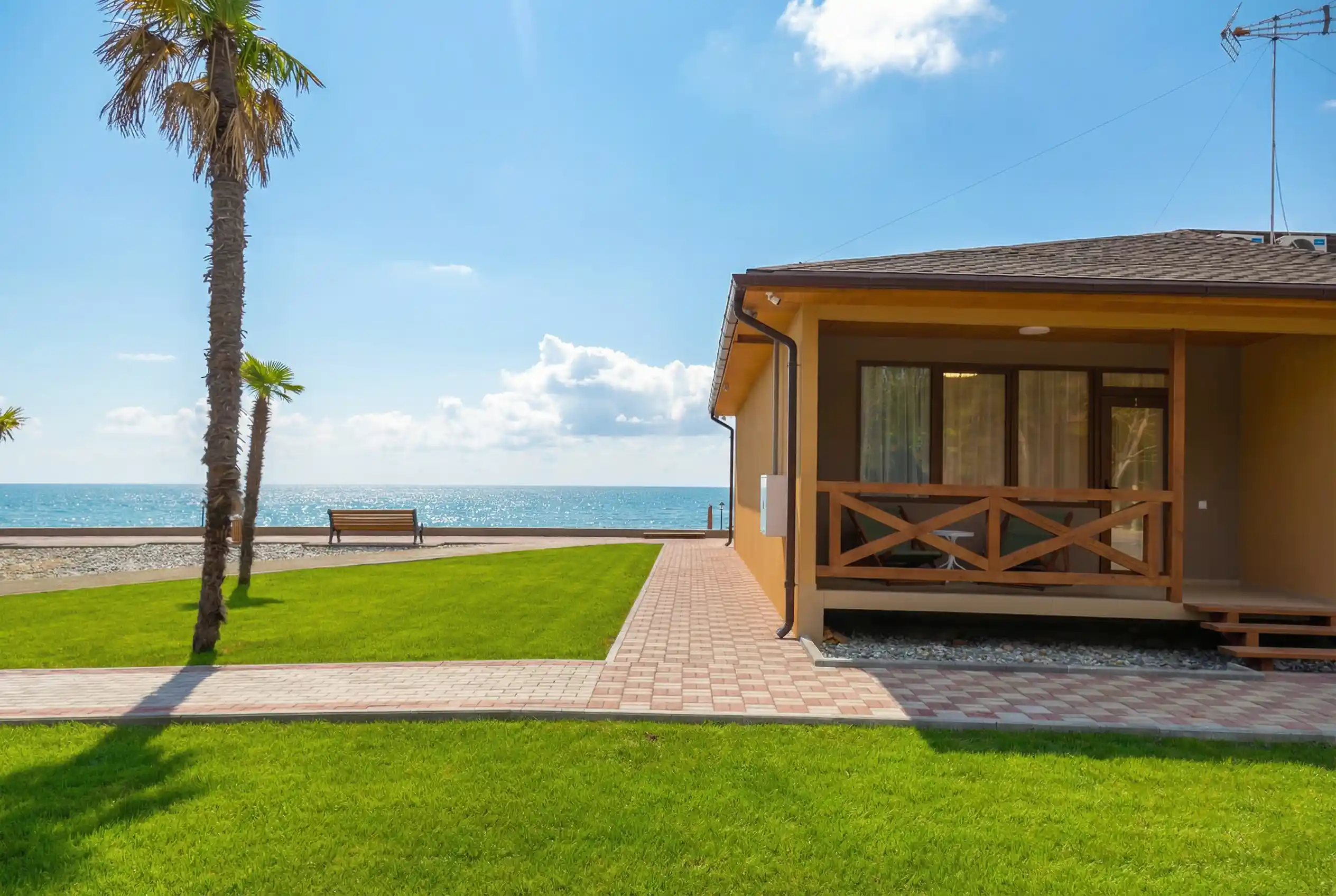 SPA HOTEL NAPRA — это современный спа-отель, расположенный на первой береговой линии в поселке Цандрипш, в окружении уникального эвкалиптового сада и сосновой рощи. Отель находится всего в 3 км от КПП Псоу, что обеспечивает быстрый и удобный переход границы для гостей из России. Близость к курортному городу Гагра делает локацию особенно привлекательной для путешественников, ценящих сочетание природы, комфорта и развитой инфраструктуры.